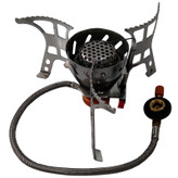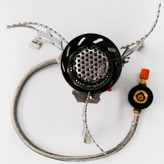 استفاده از سرشعله های شلنگ دار چندین مزیت بزرگ نسبت به سرشعله هایی که مستقیما به روی کپسول نصب می شوند دارد.این مدل سرشعه دارای یک شلنگ سوخت رسان است که به کپسول متصل می شود. آنها معمولا در زمان جمع کردن به خوبی بسته می شوند. این مدلها اغلب قدری از مدلهای ساده سنگین ترند. در بعضی از این مدلها کپسول می تواند در حالت برعکس استفاده شود که باعث کارکرد بهتر در هوای سرد می شود. این نوع سرشعله ها بازوهای گسترده تری دارند که به پایداری بهتر ظرف روی آنها کمک می کند. مزیت شان عبارت است از : اول اینکه اندازه این سرشعله ها بزرگ تر است پس می توانید ظروف بزرگتری را روی آن قرار دهید . دومین مزیت این سرشعله ها تعادل است چون به دلیل پایه هایی که دارند محکم روی زمین چفت می شوند و امکان واژگونی ظرف وجود ندارد . مزیت دیگر میزان حرارت است که به دلیل اندازه بزرگتر ، حرارت تولیدی این سرشعله ها بالاست که البته این مورد موجب مصرف بیشتر سوخت هم می شود . همچنین دارای ظرفی مخصوص است تا شما با استفاده از آن راحتی بیشتری در حمل داخل کولهپشتی، کیف و یا ساک داشته باشید.