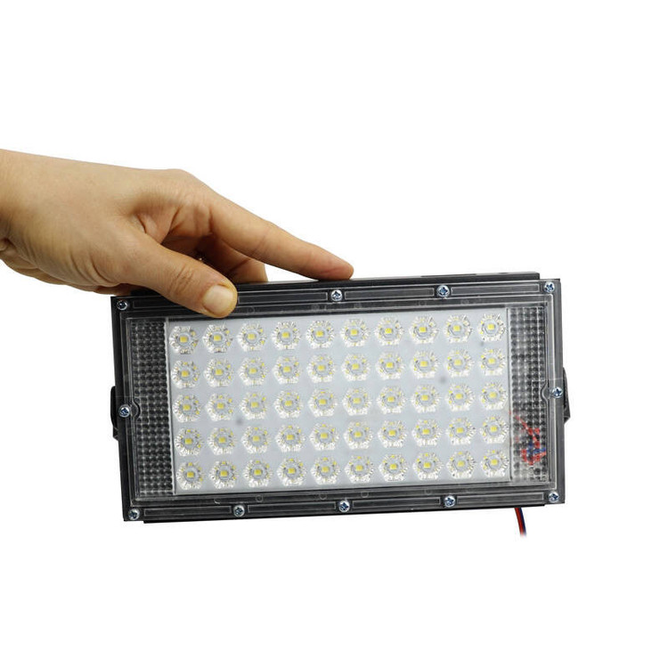 شامل 50 عدد LED با نور مهتابی و توان خروجی کلی 50 وات، دارای دسته جهت آویختن چراغ یا متصل کردن