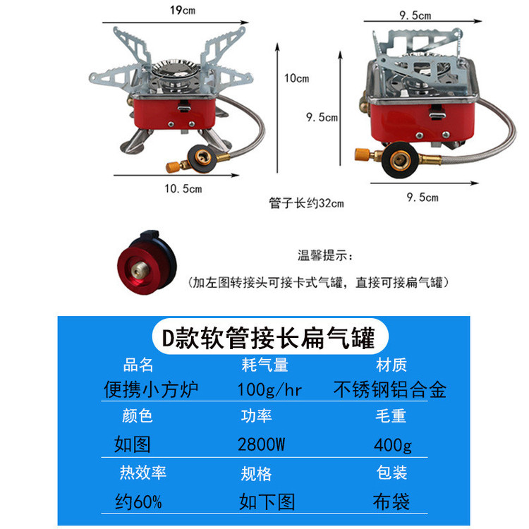 این اجاق گازی است و با کپسول های قابل حمل کوچک استوانه ای که مخصوص این مدل گاز ها تعبیه شده است کار می کند. پایه های این اجاق نیز تاشو بوده و هرکجا لازم داشتید می توانید آن ها را باز کنید. اجاق گاز کوه نوردی با ویژگی تاشویی که دارد به راحتی قابل حمل بوده و در مکان هایی مثل کوه بدون وزن اضافی و دست و پا گیر بودن به راحتی می توانید آن را حمل کنید. ابعاد این دستگاه در حالت بسته 9.5cm x 9.5cm x 9cm و در حالت باز 16cm x 16cm x 10cmمی باشد. به همراه این گاز یک کیف برزنتی کوچک و با کیفیت جهت حمل راحت تر اجاق ارسال می گردد. جنس بدنه گاز استیل ضد زنگ و آلومینیوم می باشد و علاوه بر این مجهز به فندک اهرمی هم هست پس بنابراین هیچ نیازی به کبریت یا فندک مجزا هم نخواهید داشت. پایه و بازوهای تاشو این اجاق فضای کم تری را اشغال می نماید. نازل کنترل فشار گاز به شما امکان تنظیم میزان شعله اجاق را می دهد و همانطور که گفته شد برای روشن کردن اجاق نیز هیچ نیازی به کبریت یا فندک مجزا ندارید و فقط کافیست شعله گاز را باز نموده و اهرم فندکی را بزنید تا با ایجاد جرقه گاز روشن شود. این اجاق بین کوه نوردان و کسانی که زیاد مسافرت و کمپین می روند بسیار محبوب است زیرا در حالت بسته شده بسیار جمع و جور است و وزن بسیار سبکی نیز دارد. با توجه به حالت بازشو بودن بازوهای روی گاز امکان قرار دادن قابلمه های نسبتاً بزرگ نیز بر روی آن وجود دارد پس یک محصول همه چیز تمام برای استفاده خارج از منزل است.