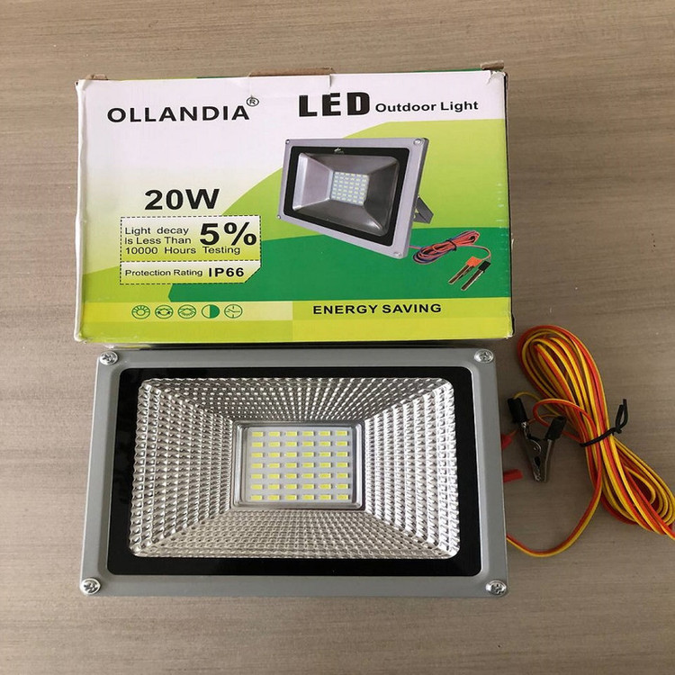 پروژکتور سیار OLLANDIA با توان 20 وات به 42 عدد لامپ از نوع LED مجهز می باشد.برای این محصول یک محافظ از نوع شیشه ای در نظر گرفته شده و به لطف استاندارد IP66 در برابر آب و گرد غبار مقاوم است. روی بدنه این چراغ سیار یک عدد سیم متصل وجود دارد که طول مناسبی داشته و دارای 2 عدد گیره سوسماری است. این گیره ها در قسمت دسته روکشی پلاستیکی دارند تا به صورت ایمن از آن ها استفاده نمایید. شما می توانید به کمک این گیره ها پروژکتور سیار را به باتری ماشین متصل کرده و از نور خیره کننده و بسیار عالی آن بهره مند شوید. محصول مورد نظر همراه مناسبی برای سفرهای شبانه ،کمپینگ و گردشگری بوده و با توجه به مقاومت آن در برابر آب می توانید در شب های بارانی نیز با خیالی آسوده از آن استفاده نمایید.در ضمن این چراغ سیار دارای مصرفی بسیار پایین می باشد و به باتری خودرو شما آسیبی نمی رساند.