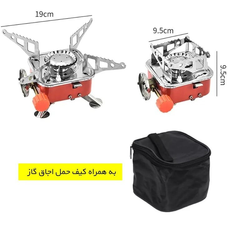 اجاق گاز کوه نوردی با ویژگی تاشویی که دارد به راحتی قابل حمل بوده و در مکان هایی مثل کوه بدون وزن اضافی و دست و پا گیر بودن به راحتی می توانید آن را حمل کنید. ابعاد این دستگاه در حالت بسته 9.5cm x 9.5cm x 9cm و در حالت باز 16cm x 16cm x 10cmمی باشد. نوع عملکرد این اجاق گازی است و با کپسول های قابل حمل کوچک استوانه ای که مخصوص این مدل گاز ها تعبیه شده است کار می کند. پایه های این اجاق نیز تاشو بوده و هرکجا لازم داشتید می توانید آن ها را باز کنید. به همراه این گاز یک کیف برزنتی کوچک و با کیفیت جهت حمل راحت تر اجاق ارسال می گردد. جنس بدنه گاز استیل ضد زنگ و آلومینیوم می باشد و علاوه بر این مجهز به فندک اهرمی هم هست پس بنابراین هیچ نیازی به کبریت یا فندک مجزا هم نخواهید داشت. پایه و بازوهای تاشو این اجاق فضای کم تری را اشغال می نماید. نازل کنترل فشار گاز به شما امکان تنظیم میزان شعله اجاق را می دهد و همانطور که گفته شد برای روشن کردن اجاق نیز هیچ نیازی به کبریت یا فندک مجزا ندارید و فقط کافیست شعله گاز را باز نموده و اهرم فندکی را بزنید تا با ایجاد جرقه گاز روشن شود. این اجاق بین کوهنوردان و کسانی که زیاد مسافرت و کمپین می روند بسیار محبوب است زیرا در حالت بسته شده بسیار جمع و جور است و وزن بسیار سبکی نیز دارد. با توجه به حالت بازشو بودن بازوهای روی گاز امکان قرار دادن قابلمه های نسبتاً بزرگ نیز بر روی آن وجود دارد پس یک محصول همه چیز تمام برای استفاده خارج از منزل است.گاز مورد استفاده در این اجاق از نوع بوتان می باشد.