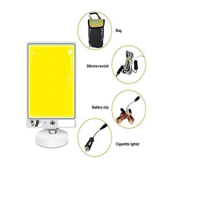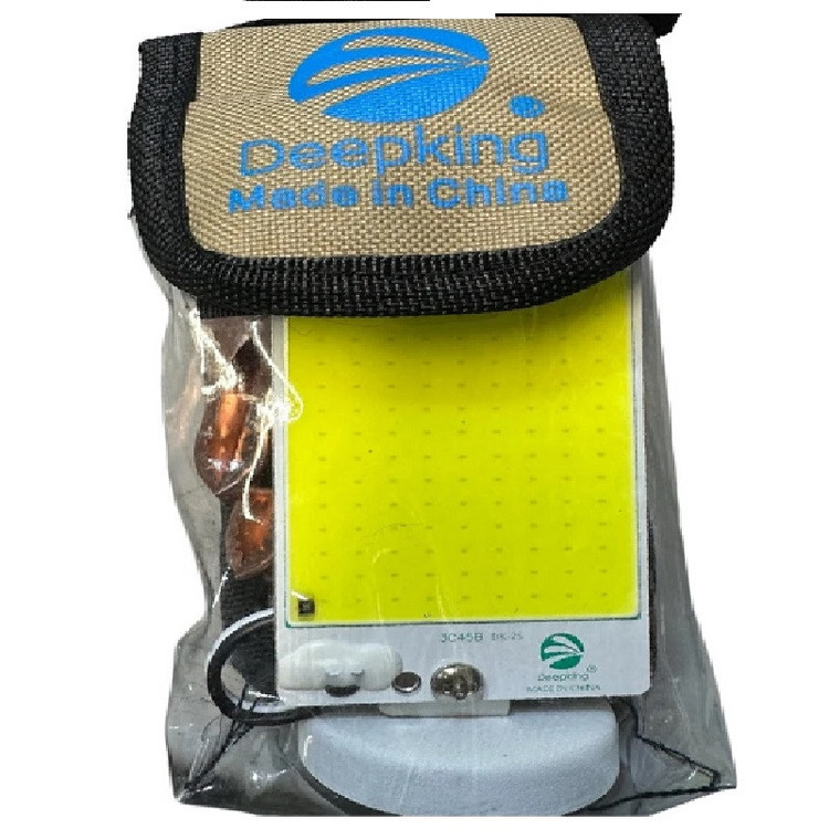 چراغ کمپینگ DeepKing مدل DK-12 COB 20W با استند آهنربایی دارای پنل نور سفید برای روشن کردن محیط میباشد و همچنین در برابر شوک و لرزش نیز مقاوم میباشد. خرید چراغ کمپینگ تجربه خریدی کارآمد برای شما فراهم میسازد. نورپردازی آن به صورت تمام صفحه سفید رنگ طراحی شده است. این چراغ کمپ، دارای ولتاژ ورودی 12 ولت برق مستقیم (DC) میباشد و توان مصرفی آن تقریبا 20 وات ارزیابی شده است. نور این چراغ، اگر در ارتفاع بالایی مانند سقف ماشین قرار داده شود، تمام محیط اطراف را برای شما روشن میکند. چراغ کمپینگ با استند آهنربایی میتواند در خانه، محل کار، در مشاغل کشاورزی، فضاهای صنعتی و بازار شبانه و دورهمیهای خارج از منزل و … استفاده شود. همچنین میتوانید به عنوان روشنایی اضطراری نیز از آن بهره ببرید. پنل نوری این محصول دارای صفحه متشکل از 148 لامپ COB با میزان روشنایی 5500 لومن گزارش شده است. طول عُمر مفید این پنل بیش از 30000 ساعت میباشد. پایه این محصول یک استند آهنربایی از جنس آلیاژ آلومینیوم است. مقاوم در زمان بارندگی(درجه حفاظت تا رتبه IP65 در مقابل آب)