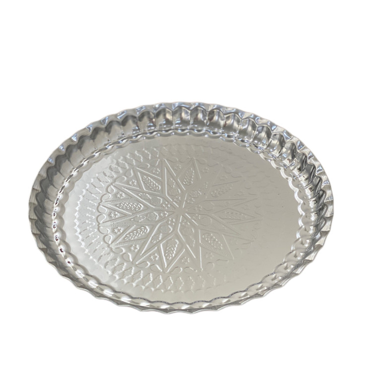 سینی استیل نقش دار قطر 36 سانتی متر مجموعه 6 عددی