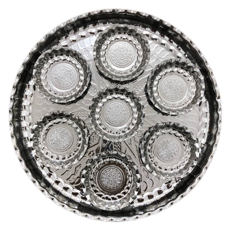 مجموعه ظروف هفت سین مدل سینی سنتی طرح دار استیل دالبر دار می باشد که برای استفاده به عنوان سفره هفت سین در شروع سال نو شمسی می تواند تنوعی تازه در منزل یا محل کار شما ایجاد نماید.