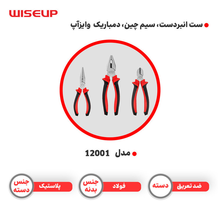 انبردست و انبر سیم چین و انبر دمباریک وایزآپ مدل 12001