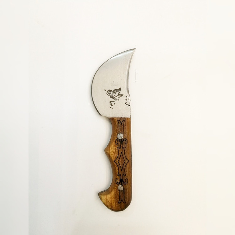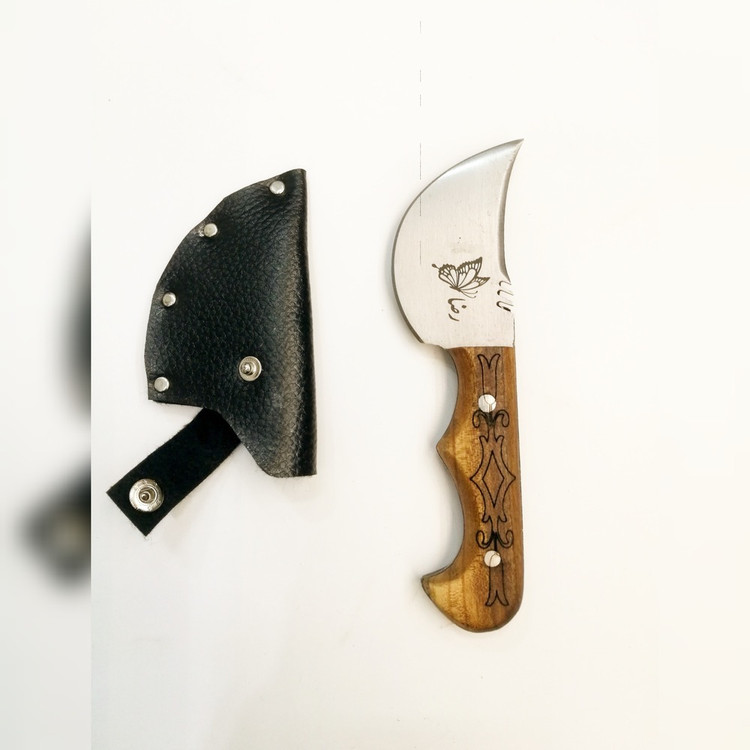 چاقوی سفری مدل کپوری دسته چوبی به همراه کاور و غلاف چرمی دارای تیغه فنر با کیفیت و خوش دست مناسب برای کمپ و سفر و استفاده های دیگر می باشد. از این چاقوی سفری زیبا نیز می توان برای کلکسیون و استفاده های تزیینی نیز بهره برد.