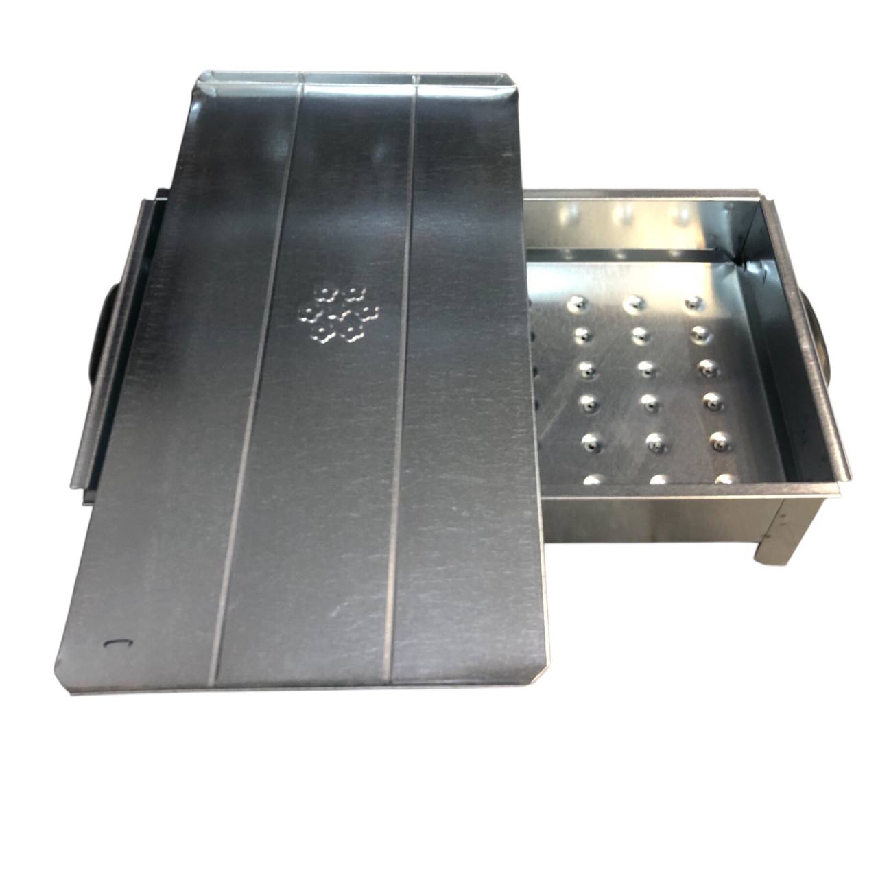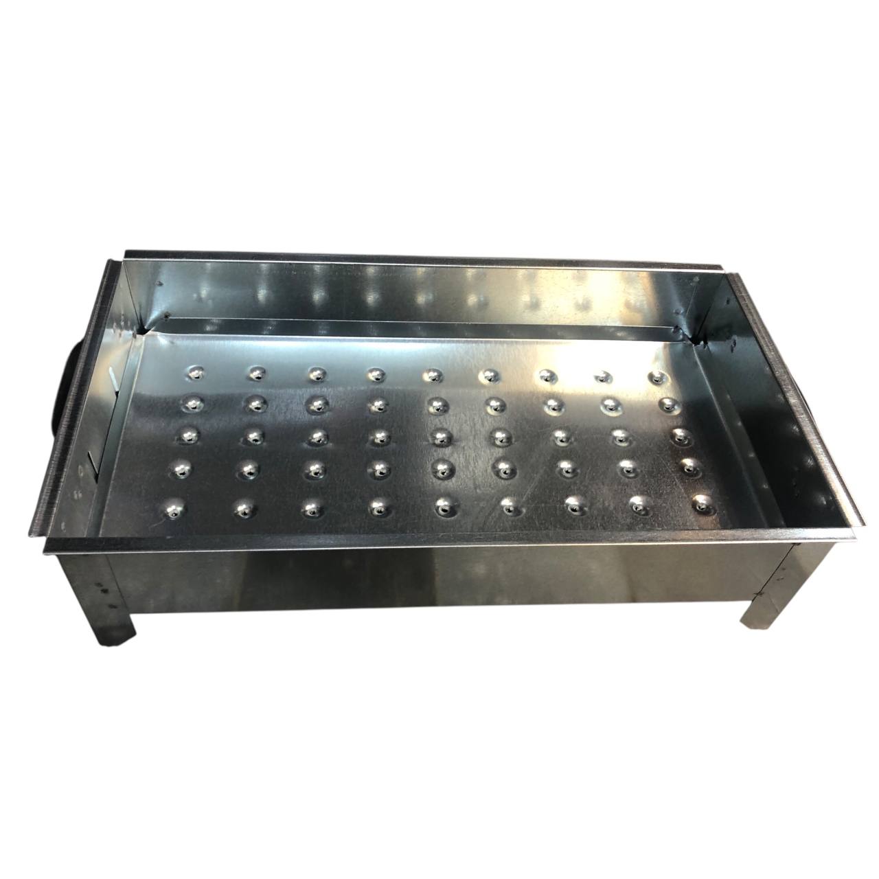 برای پخت کباب و غذاها در فضاهای بدون سقف و خارج از خانه باید از وسایلی مناسب استفاده کرد. یکی از این وسایل که به پخت گوشتهای گوناگون کمک بسزایی میکند، منقل است. اگر بهدنبال منقلی با سایز مناسب هستید که هم برای منزل و هم مسافرت مناسب باشد، منقل درب دار2640 انتخابی مطلوب بهحساب میآید.این منقل به طول 40 ساتی متر و عرض 26 سانتی متر می باشد که در دو طرف این منقل، دسته تعبیه شده است تا بتوانید در صورت لزوم آن را بهراحتی جابهجا کنید. زغال از بغل های این منقل به بیرون ریخته نمی شود. این مدل از جنس گالوانیزه خالص با ورق نیم میل است تا مقاومت و استحکام لازم را در برابر حرارت و گرمای زغالهای گداخته داشته باشد. در ضمن دریچه ای برای خارج کردن خاکستر های جمع شده در زیر آتشدان منقل تعبیه شده است که امر نظافت و تخلیه را ممکن می سازد.