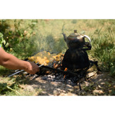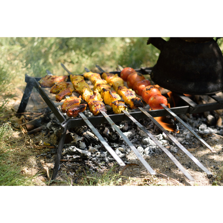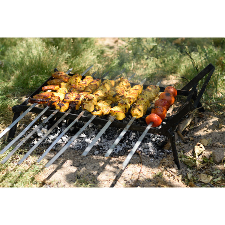 اگر علاقمند به طبیعت گردی و مسافرت هستید، با همراه داشتن منقل سفری تاشو میتوانید لذت سفر خود را افزایش دهید.این منقل سفری هم پس از استفاده در حالت تاشده فضای بسیار کمی اشغال میکند و همواره میتوان آن را در صندوق عقب یا زیر صندلی خودرو به همراه داشت. با روشن کردن آتش و قرار دادن آن روی آتش میتوان کتری، قابلمه و ماهیتابه را روی آن گذاشت و همزمان از باقی فضا برای گذاشتن سیخ و کباب کردن استفاده کرد و در صورتی که به فضای بیشتری برای کباب کردن نیاز بود به راحتی میتوان با بالا آوردن نگهدارندهی ظروف فضای بیشتری برای سیخها فراهم کرد. سطح زیادتر قابل استفاده نسبت به نمونههای دیگر امکان استفاده همزمان از چند ظرف روی آن را مهیا میکند. منقل سفری تاشو بین کتری و ظروف شما با آتش فاصله ایجاد میکند. فاصله ایجاد شده جریان هوا به مرکز آتش و ذغال را تسهیل میکند و ضمن کاهش دود آن، اضافه کردن ذغال، هیزم و چوب را به آن راحتتر میکند. منقل سفری روی سطوح ناهموار به صورت مستحکم و پایداری قرار میگیرد و با خیال راحت میتوانید ظروف خود را روی آن قرار دهید و هیچ گونه نگرانی از بابت سر خوردن و افتادن آنها نداشته باشید. فلز استفاده شده در این منقل سفری ضخامت و استحکام بالایی دارد. به همین دلیل نیروهای زیاد و وزنههای سنگین را به راحتی تحمل میکند و با استفاده مکرر روی آتش، هیچ آسیبی به آن وارد نمیشود. شکل مسطح و اندازه منقل سفری در حالت جمع شده و کارایی آن در کمپینگ و سفر، آن را به ابزاری کاربردی جهت همراهی شما در سفر، پیکنیک و گردش تبدیل کرده است که به کمک آن میتوان در هر مکانی و به راحتی از آشپزی در طبیعت لذت ببرید. در ضمن لازم نیست نگران حمل و نقل آن و کثیف شدن وسایل کنارش و ماشین بعد از کمپینگ باشید چون کیف مقاوم همراه این محصول، کاملا آن را میپوشاند و تا استفادهی بعدی میتوانید آن را در هر جایی که خواستید قرار دهید بدون این که دوده و کثیفی باقیمانده روی آن جایی را کثیف کند.