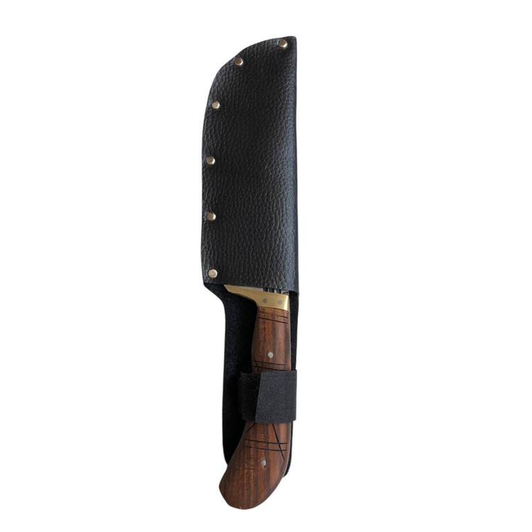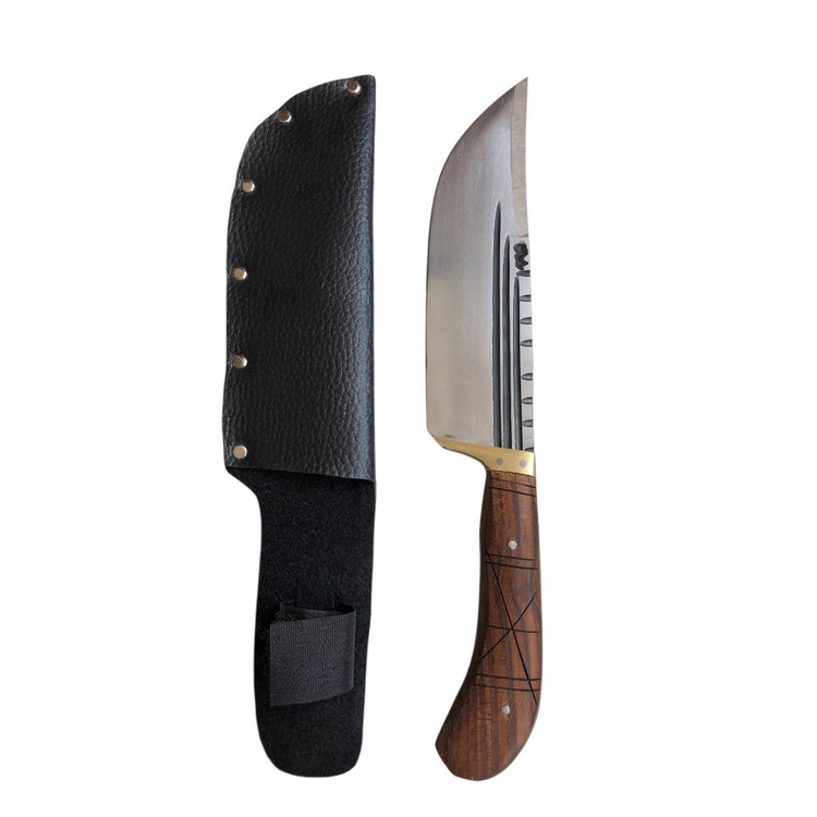 چاقوی مسافرتی شکاری ساسان با تیغه فنر مناسب برای طبیعت گردان و دوستداران کمپینگ به همراه غلاف چرمی برای حمل ایمن.