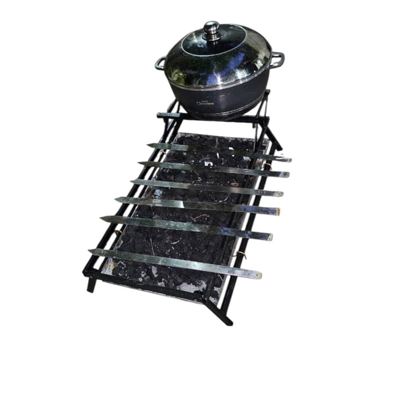منقل تاشو صفحه دار متحرک به همراه کفی که از کفی می توان برای ذغال و بدون کفی می توان برای هیزم و چوب استفاده نمود