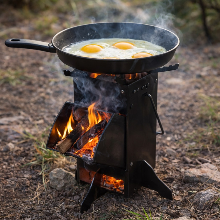 اجاق هیزمی سفری به همراه تابه و انبر و فندک