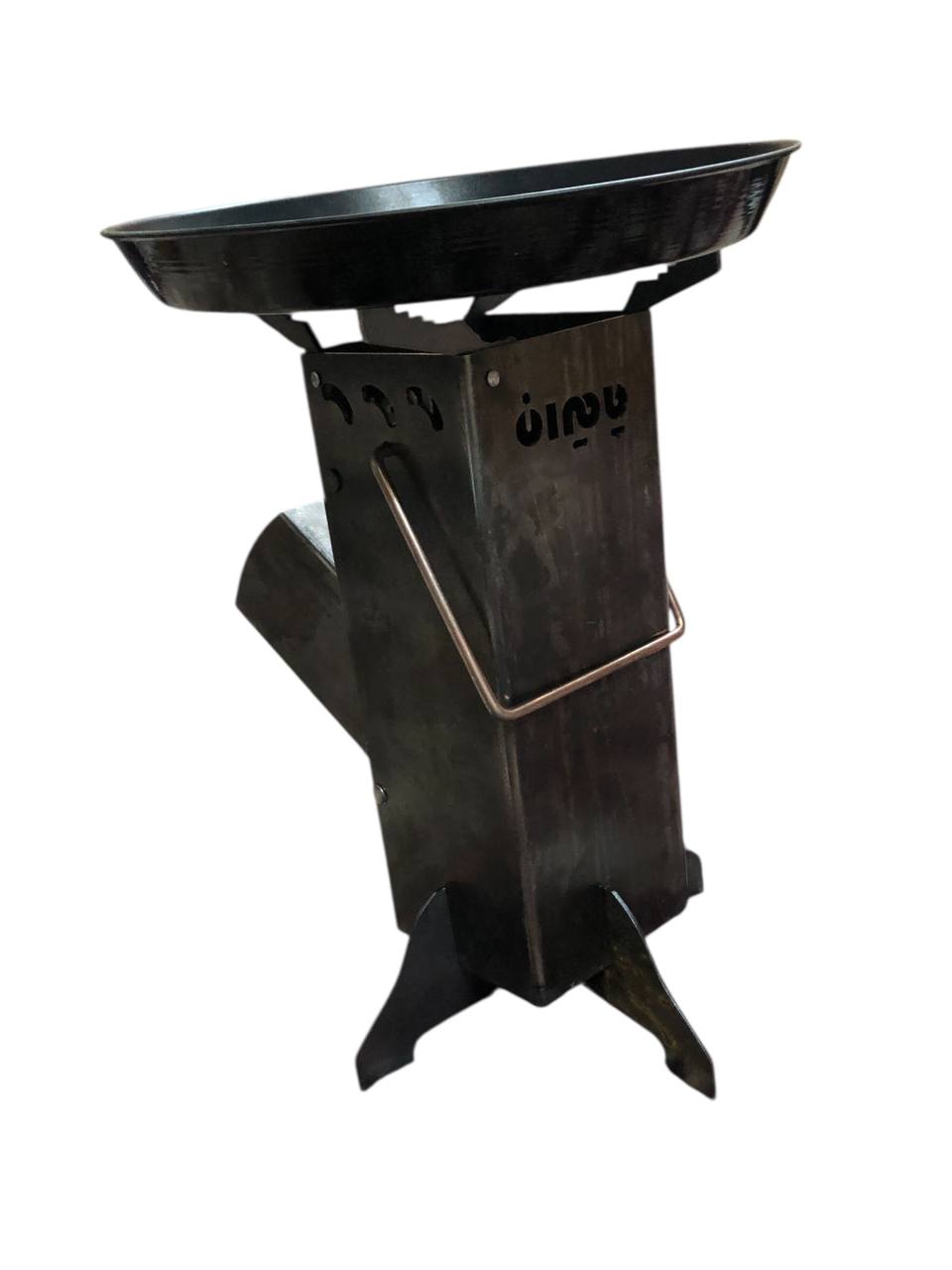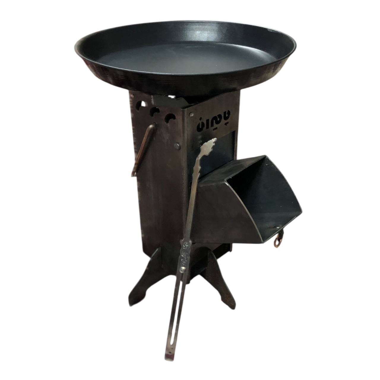 اجاق سفری ذغالی و هیزمی بههمراه تابه تفلون و انبر و فندک