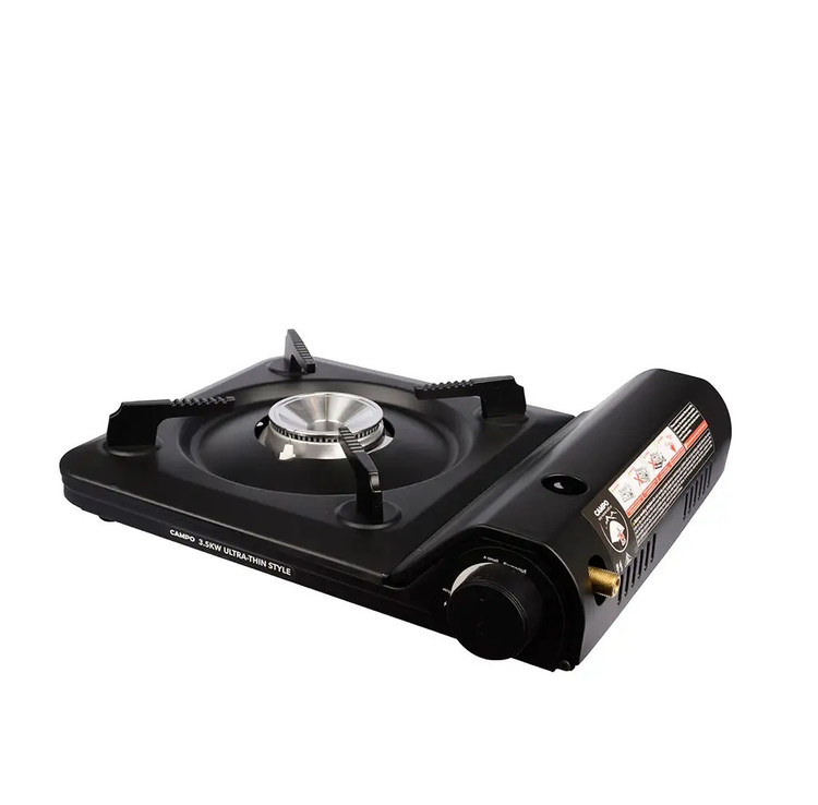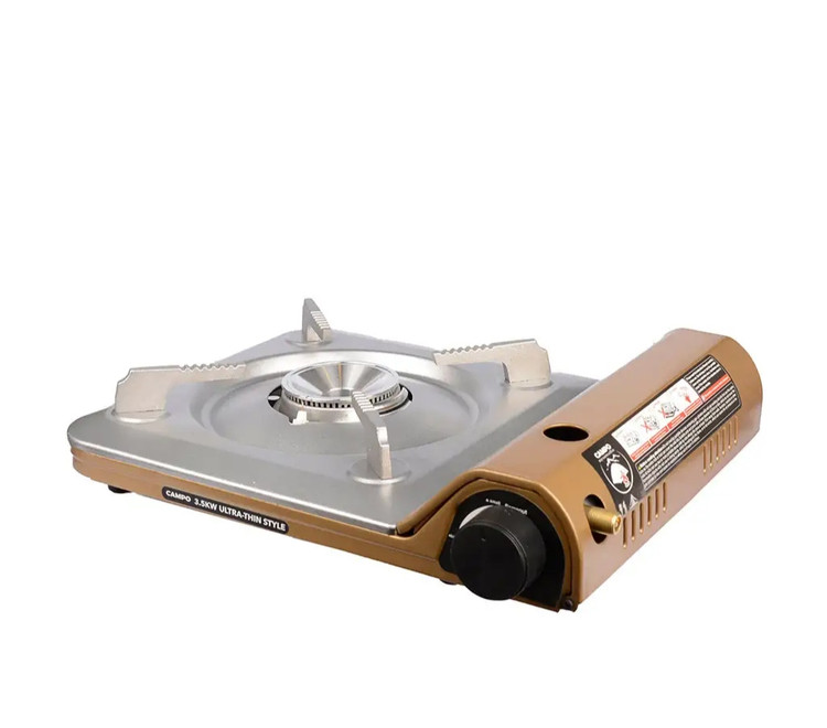 اجاق گاز مسافرتی CAMPO مدل VIP یک اجاق گاز پرتابل یا قابل حمل بسیار کاربردی بوده و جهت استفاده در فعالیت های کمپینگ، آفرود و مسافرت گزینه ای بسیار ایده آل و کاربردی میباشد ، این اجاق گاز از نظر کارایی و کاربرد کاملا شبیه به اجاق گاز خانگی طراحی شده است. اجاق گاز مسافرتی CAMPO مدل VIP یک اجاق گاز پرتابل یا قابل حمل بوده که از طراحی بسیار کاربردی ، استاندارد و هوشمندانه ای برخوردار میباشد ، این اجاق گاز با وزن سبک و ابعاد کم حجم گزینه مناسبی جهت استفاده در برنامه های کمپینگ و سفر هست. اجاق سفری CAMPO مدل VIP توسط کپسول های گاز بوتان استوانه ای یا فشنگی 220 گرمی تغذیه میشود و قدرتی بالغ بر 2.9KW دارد ، مصرف گاز این اجاق نیز به طور متوسط 152 گرم بر ساعت است و به کاربر این امکان را میدهد تا به راحتی و سرعت زیاد و بدون نیاز به جمع کردن هیزم و یا درست کردن ذغال و آتش بتواند به تهیه غذا در دل طبیعت بپردازد ، استفاده از این اجاق سفری در حفظ و سلامت محیط زیست نیز بسیار تاثیر گزار است. اجاق گاز کمپینگ CAMPO مدل VIP مجهز به صفحه بزرگ بوده که به کاربر این امکان را میدهد تا بتواند از ظروف های بزرگ سفری استفاده نماید ، همچنین وجود جرقه زن پیزوالکتریک در این اجاق کاربر را از همراه داشتن کبریت و فندک مجزا بی نیاز میکند ، بر روی بدنه اجاق نیز یک اهرم یا پیچ جهت تنظیم حرارت قدرت شعله تعبیه شده است. رنگ سوخت شعله اجاق مسافرتی CAMPO به رنگ آبی بوده که نشان دهنده ایمنی بالا و طراحی استاندارد این قسمت میباشد ، علاوه بر این در قسمت سرشعله از جدیدترین تکنولوژی روز دنیا (شعله ترکیبی) استفاده شده که سبب سرعت بخشیدن به پخت و پز مخصوصا پخت گوشت و سبزیجات میشود.